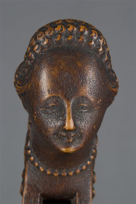 Although Joachim Tielke is often referred to as the “Stradivarius of the viola da gamba” and enjoyed an international reputation, the question has been raised as to whether he was a real instrument maker at all or merely a dealer, selling the wares worldwide from innumerable Hanseatic instrument suppliers. Nevertheless, the “Tielke” violas da gamba were praised for their “strong and brilliant sound” even towards the end of the 18th C. and were instruments of choice for solo playing. Duke Johann Ernst III of Weimar, where Bach was employed, played on a Tielke, which is preserved in his estate (Sammlungen der Klassik Stiftung Weimar). Tielke had a penchant for richly decorated instruments: nothing was spared in the accoutrements, often employing ivory and ebony garlands and flowers, tortoise shell, carved heads: a clear sign that these instruments were destined for the affluent aristocratic and patrician clientele. Our example bears the carved head of a woman, in the style of the galleon figures of Hanseatic ships, crowning the pegbox, carved à-jour (perforated), with vegetal and flower motifs and a cupid entwined in the foliage.
